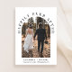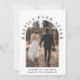 Faire-part élégant d'élopement ou de mariage intime et invitation à la réception. Le recto présente votre photo de mariage dans un cadre en forme d'arche et "Happily Ever After" dans une typographie élégante. Ajoutez vos prénoms, date et lieu de mariage. Au verso, personnalisez votre annonce de mariage et les détails de la réception et ajoutez vos noms dans une écriture semblable à une signature.