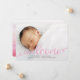 Carte de Faire-part photo de naissance de bébé moderne écrite à la main avec script Pin. Étincelle et Parties scintillant ©. Plus de styles disponibles dans notre boutique. La typographie est superposée avec le mot "bienvenue" dans une police de script manuscrite. Design élégant et polyvalent vous pouvez customiser pour une petite fille, ou jumeaux, nouveau faire-part bébé. Motif d'aquarelle rose sur le dos.