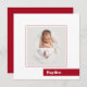 Les annonces de naissance de 5,25 po x 5,25 po en carré présentent la photo de votre nouveau-né préféré et le nom de votre bébé sur un bloc rouge sur le devant, les statistiques de naissance et vos noms sur le dos. **LES ENVELOPPES CARRÉS ONT BESOIN D'UN POSTAGE SUPPLÉMENTAIRE. Utilisez des enveloppes A7 de 5 po x 7 po pour des tarifs postaux réguliers.