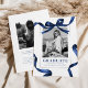 Célébrez le jalon de votre diplômé avec nos cartes d'annonce de remise de diplôme simples mais élégantes. Chaque carte présente un fond blanc frappant, orné d'une photo de votre diplômé encadrée par un nœud et un ruban aquarelle bleus. Retournez-la et découvrez une autre photo captivante ainsi qu'un aperçu de leurs plans futurs passionnants. Mélangez parfaitement tradition et sophistication moderne et partagez votre fierté avec votre famille et vos amis.