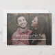 Les événements peuvent jeter un coup de pouce dans les travaux, mais vous pouvez toujours montrer à vos invités que vous êtes sur la bonne voie pour que cela se fasse, seulement cela va être un peu plus tard que prévu. Ajoutez votre photo de fiançailles préférée sur cette carte d'annonce de "Changement de date". "Nous avons changé la date" est écrit en grande typographie de script moderne et en dessous figurent les noms. Vous pouvez modifier à la fois le message et les noms, comme vous le faites, pour convenir au thème que vous avez l'intention de transmettre à vos invités.