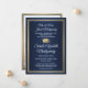 Partagez la joie d'une remise de diplôme de lycée ou d'université avec ces faire-part personnalisés photo bleu marine, or et blanc. (ASTUCE DE PLACEMENT DE L'IMAGE : un moyen simple de centrer une image exactement comme vous le souhaitez est de la rogner avant de la télécharger sur le site Web de Zazzle.) Ce modèle de style formel comprend les noms des parents et du diplômé, ainsi que le texte de votre choix, tel que les détails de l'invitation à la fête, les honneurs spéciaux, le titre du diplôme, la citation inspirante préférée, les coordonnées du diplômé, les projets d'études futures ou le nouveau poste. Tout le texte est simple à personnaliser. Le design présente un fond ombré bleu moderne, une bordure en faux or et une toque, une calligraphie élégante, une typographie traditionnelle et une photo de votre choix, telle qu'une photo de fin d'année ou une image de la cérémonie de remise des diplômes. Veuillez noter que l'or est une couleur imprimée, pas une feuille métallique. Ces