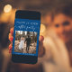 Elopement bleu classique moderne ou faire-part mariage privé et invitation à la réception qui présente votre photo et "Happily Ever After Party" dans un mélange de typographie blanche simple et un script blanc chic avec des swashes. Ajoutez vos prénoms et votre date de mariage. À l'arrière, personnalisez votre faire-part mariage et votre invitation de réception, entrez votre adresse de site Web mariage pour créer un code QR que les invités peuvent scanner pour voir vos photos mariages, tous les détails et à RSVP en ligne, et ajoutez vos noms dans un script signature.