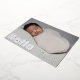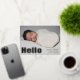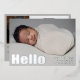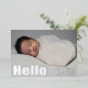 Il s'agit d'un modèle de bébé chic, moderne et simple. Sur l'avant, vous trouverez de l'espace pour votre photo préférée à taille réelle avec un élégant texte "bonjour" superposé dans un vrai papier argenté. Au verso, il y a de la place pour 2 autres photos et un message personnel. Customisez facilement pour ce souvenir unique pour la famille et les amis à apprécier pour les années à venir.