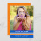 Carte de Faire-part moderne Blue & Orange Photo Graduation.