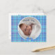 cigogne bébé garçon photo personnalisée garçon faire-part différentes nuances de rayures bleues sur l'arrière - plan