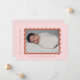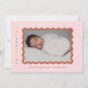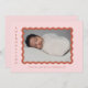 Un faire-part de naissance moderne pour votre petite fille avec votre photo préférée de votre petite fille dans un cadre de pétoncle ondulé en terre cuite sur un arrière - plan rose vif et texte en terre cuite. Ajoutez un message personnel à l'inverse.