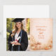 Warm autumn tones meet elegant celebration styling in this pumpkin and floral graduation design. A hand-painted heirloom pumpkin sits surrounded by soft peach blooms, muted greenery, and golden foliage, creating a romantic harvest aesthetic. The delicate wreath framing and warm ivory background give it a refined, feminine feel while still embracing cozy fall charm.