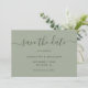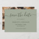 Créez une belle photo de mariage enregistrer la carte de date avec une police de script élégante. Personnalisez facilement ce mariage vert sauge, enregistrez la carte de date avec votre image et les détails du mariage.