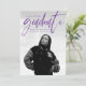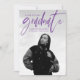 Carte de faire-part moderne de graduation avec la photo préférée de votre diplômé sur le devant avec "Graduate" dans une écriture violette manuscrite. Personnalisez le devant du faire-part en ajoutant le nom du diplômé, le nom de l'école et l'année de diplôme. La faire-part tendance de graduation inverse pour afficher 3 photos supplémentaires avec de l'espace pour le texte tels que les plans futurs, les détails de graduation, les détails de la fête, etc. Le faire-part de diplôme de 4 photos est parfait pour les diplômés du secondaire et du collège.