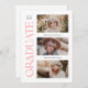 Célébrez votre réussite avec style grâce à ce faire-part de graduation photo multiple. Il présente le mot "gradué" écrit dans un serif rose et élégant le long du côté et a de l'espace pour votre nom, l'école, et année de classe avec trois photos sur le devant. L'arrière du faire-part a de l'espace pour une autre photo avec un bref message. Que vous soyez diplômé du lycée, de l'université ou de l'extérieur, ce faire-part est la meilleure façon de célébrer vos réalisations!