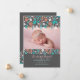 Plage tableau noir nouveau-né photo faire-part de naissance avec des trésors marins : dollar de sable, étoiles de mer, corail, perles, coquillages, hippocampes, etc