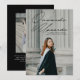 Faire-part moderne de graduation avec photo verticale du diplômé avec "En avant et en haut" en noir manuscrit. Personnalisez le devant du faire-part de remise de diplômes en y ajoutant le nom du diplômé, l'école et l'année de fin d'études. Le faire-part inverse pour afficher une photo supplémentaire avec les plans futurs du diplômé, les détails de la fête de grad, etc. montré ci-dessous.