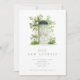 Une jolie nouvelle adresse/nouvelle faire-part avec une aquarelle illustrant une porte verte entourée de roses escalades roses.