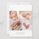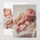 Partagez l'arrivée de votre bébé fille avec cette annonce de naissance photo au format portrait chic. Une superbe photo de face en pleine page est superposée d'une calligraphie manuscrite blanche moderne pour le nom du bébé et les détails de naissance. Le verso présente un collage de quatre photos et un message « Bienvenue avec amour » des parents. Propre, minimaliste et merveilleusement moderne. Tout le texte est entièrement personnalisable.