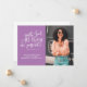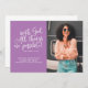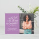 Une carte moderne de faire-part de graduation chrétienne, avec le verset de la Bible Matthieu 19:26 "Avec Dieu toutes choses sont possibles" en caractères blancs de script moderne, sur un arrière - plan lilas qui peut être édité en cliquant sur 'customiser plus loin', à côté d'une photo du diplômé. Personnalisez avec les détails de graduation en police blanche sans serif.