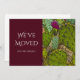 We've Moved simple moving announcement, with a prickly pear cactus design and a red background. With customizable lettering, you can add your own information. A great way to add a southwestern touch to your move to the desert.