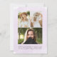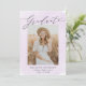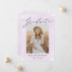 Elégant faire-part de graduation de quatre photos avec "Graduate" affiché dans un script de calligraphie moderne noir avec un arrière - plan de lavage à l'aquarelle violet clair. Personnalisez le devant du faire-part de graduation violet en ajoutant votre photo préférée et le nom du diplômé, l'école et l'année de graduation. La carte de faire-part de remise de diplômes s'inverse pour afficher 3 photos supplémentaires avec espace pour le texte personnalisé, comme les plans futurs du diplômé, les réalisations, les détails de la fête de remise de diplômes, etc. Le design est parfait pour les diplômés du secondaire et du collège.