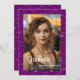 Elegant math graduation photo announcement with a purple and white math formulas and equations patterned background. Illustrated and designed by Patricia Alvarez.
