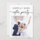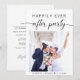 Annonce de mariage ou d'élopement moderne et invitation à la réception. Le recto présente votre photo, "Réception de fête pour toujours" dans une typographie simple et un script tendance avec des fioritures et vos noms et date de mariage. Au verso, personnalisez votre annonce et invitation et ajoutez vos noms dans un script ressemblant à une signature.