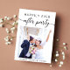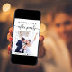 Annonce de mariage intime moderne ou invitation à une réception privée. Le recto présente votre photo, "Fête pour toujours heureux" dans une typographie simple et un script tendance avec des fioritures et vos noms et date de mariage. Au verso, personnalisez votre annonce et invitation et ajoutez vos noms dans un script ressemblant à une signature.