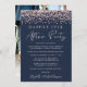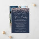 Élégante annonce de mariage ou de fuite amoureuse bleu marine foncé et invitation de réception. Le devant présente des confettis pailletés or rose et "Fête de Mariage Pour Toujours" en typographie simple et une écriture chic. Personnalisez votre annonce et invitation et ajoutez vos noms dans une écriture de signature. Le verso présente votre photo de mariage, les prénoms et la date du mariage.