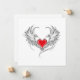 Coeur rouge peint de façon artistique avec ailes d'ange gris, décoré de contour lisse noir.