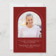 Cette faire-part de graduation en arc minimaliste rouge présente un cadre en arc délicat, 2 modèles photo et une élégante typographie moderne.