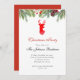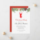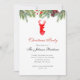 Invitation vos invités de fête de vacances dans le style avec cette élégante silhouette de rennes d'aquarelle peinte à la main en rouge avec des branches de pin et la frontière des baies sainte invitation de fête de Noël.