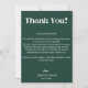 Carte de remerciement moderne pour la disposition de mariage vert émeraude, texte par défaut pour remercier les invités pour la célébration et le cadeau. Ajoutez votre nom en bas de cette carte pour la personnaliser