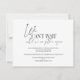 Une merveilleuse typographie moderne et simple Notre mariage est reporté carte d'annonce de mariage. Design minimaliste noir et blanc avec police de caractères de style typographique sur le recto et le verso. Le verso de la carte indique "Nous avons hâte de nous réunir à nouveau". Ajoutez votre message personnel pour informer vos invités de mariage de vérifier votre site web de mariage et qu'une nouvelle carte de réponse sera envoyée par courrier lorsque le moment sera venu.