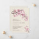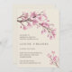 Carte d'annonce de report de mariage floral élégant avec une branche composée de fleurs de cerisier rose peintes à l'aquarelle en haut à gauche et en bas à droite, sur fond ivoire. Vos détails sont en couleur marron foncé et alignés à gauche. Ce design chic est un excellent moyen d'annoncer que votre mariage a été reporté.