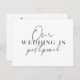 Une merveilleuse typographie moderne et simple Notre mariage est reporté carte d'annonce de mariage. Design minimaliste noir et blanc avec police de style typographique à l'avant et à l'arrière. Au dos de la carte, il est écrit "Nous avons hâte de nous réunir à nouveau". Ajoutez votre message personnel pour informer vos invités de vérifier votre site web de mariage et qu'une nouvelle carte de réponse sera envoyée par courrier lorsque le moment sera venu.