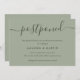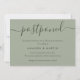Annoncez le report de votre mariage avec cette carte minimaliste vert sauge avec une police moderne.