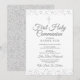 Faire-part reporté de première communion argenté avec une touche d'étoiles délicates, vous pouvez personnaliser avec vos informations spéciales de première communion dans un texte argenté chic. Conçu par Thisisnotme