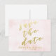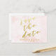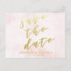 NouvelleAlléeParc - Carte postale élégante, avec 'Sauvegarder la date' en typographie élégante de faux foil doré, sur un fond aquarelle rose tendre. Facile à personnaliser sur Zazzle avec vos propres noms, date ou autre texte pour un design personnalisé. Tous les styles de texte, couleurs et tailles peuvent être modifiés pour répondre à vos besoins. Vous pouvez également changer la couleur de fond en n'importe quelle couleur que vous préférez.