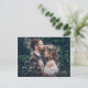 Nos cartes postales de mariage avec photo d'élopement sont le moyen idéal pour annoncer votre union à vos amis et à votre famille tout en mettant en valeur votre photo d'élopement préférée. Le design délicat avec lettrage manuscrit ajoute une touche romantique à la mise en page moderne et magnifique de la carte photo. Fabriquées à partir de papier cartonné de haute qualité, ces cartes postales ont une sensation luxueuse et seront chéries par vos proches comme un souvenir de votre jour spécial. L'option de photo personnalisable vous permet de choisir votre photo d'élopement préférée et d'ajouter une touche personnelle à la carte. Avec suffisamment d'espace pour votre message d'amour et de gratitude, ces cartes postales sont un moyen parfait de partager votre joie avec ceux qui vous sont les plus chers. Que vous optiez pour une photo classique en noir et blanc ou une photo vibrante et colorée, nos cartes postales de mariage avec photo d'élopement sont un moyen élégant et