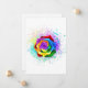 Grand rose fleuri avec pétales arc-en-ciel sur arrière - plan blanc, peint sur des éclaboussures de peinture colorée et lumineuse. 3d