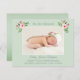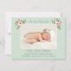 Bienvenue à votre nouveau-né dans la famille, et présenter à des amis avec ce carte photo. Floral Baby Girl Photo Faire-part de naissance Card inclut le nom du bébé, Dob, poids, pouces et le nom des parents. Le design est composé de fleurs roses et d'un arrière - plan vert menthe. Bonne façon d'envoyer des annonces de naissance et une photo en même temps. Ajoutez facilement votre photo en utilisant notre modèle.