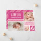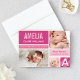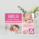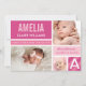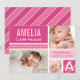 Annoncez l'arrivée de votre petite fille avec cette carte de naissance à blocs de couleur audacieuse et moderne. Trois photos de votre nouveau-né sont présentées dans un collage vibrant avec des blocs rose vif, rose clair et blanc, une bande diagonale en accent et une initiale monogramme surdimensionnée. Le nom du bébé, la date de naissance, l'heure, le poids et la taille sont affichés bien en vue aux côtés d'un message des parents fiers. Tout le texte, les couleurs et les photos sont entièrement personnalisables.