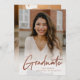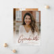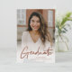 Un Rose moderne Gold Script Photo Graduation Faire-part avec police manuscrite pleine saignée photo portrait sur le devant avec le nom et les détails de graduation. Le dos a une deuxième photo et des détails supplémentaires. Cliquez sur le bouton Modifier pour customiser cette conception.