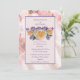 Un beau faire-part de mariage avec un fond de fleurs de cerisier roses. Le centre rose pâle est rehaussé de belles roses de la paix jaune rosé et d'accents de couleur violette.
