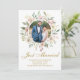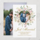 Un élégant cadre circulaire composé de pivoines rose blush aquarelles et de roses crème ivoire encadre cette charmante annonce de mariage de printemps. Les brindilles botaniques de feuilles d'eucalyptus vert sauge ornent le milieu de la composition de fleurs de couleur pêche au-dessus de la belle écriture cursive. Ces cartes délicates sont parfaites pour les jeunes mariés qui ont eu une cérémonie intime et restreinte avec leur famille proche pendant cette période de distanciation sociale. Une belle façon pour une mariée et un marié d'annoncer à tout le monde qu'ils se sont mariés en toute intimité.