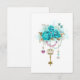 Clé d'or antique aux roses turquoise tendance décorée de feuilles d'or blanc et de perles rose et bleu. Couleur tendance. Rose turquoise. Blanc doré. Tiffany bleu.
