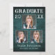 Rustique thème pays 3 cartes de faire-part de remise de diplômes photo. Ce design est composé de typographie de style rustique en typographie surmontée de "Graduate", l'année du diplôme, le nom de l'école et bien sûr le nom du grade. Les photos mettent en valeur la carte et sont accentuées par un riche arrière - plan turquoise, couleur bleu-vert en planche de bois. Le dos de la carte offre des espaces de texte personnalisés pour des informations sur votre diplôme ou peut être laissé vide si vous souhaitez écrire un message à la main. Parfait pour les étudiants de niveau secondaire, collégial et universitaire et les personnes âgées.