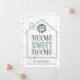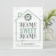 Envoyez à votre famille et à vos amis cette nouvelle carte de déménagement à thème rustique. Ce design branché présente un contour d'une maison en turquoise avec une couronne de laurier verdoyante et un monogramme personnalisé au centre. ci-dessous se trouve les mots "Home Sweet Home" sur un arrière - plan de bois patiné blanc et gris. Le bas de la carte a votre nom de famille et nouvelle adresse. Le dos de la carte a un arrière - plan en bois patiné assorti, une couronne de laurier ainsi que votre message et signature personnalisés. Conçu par Susan Coffey.