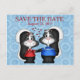 M. et Mme Skunk s'étreignent de coeur au-dessus de leur tête. Amusants enregistrer la date carte postale à envoyer aux invités mariages.