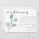 Réduction de mariage - Écriture Moderne Eucalyptus. Pour les moments où une cérémonie de mariage plus petite et socialement distante est essentielle et que vous devez décommander certains invités et leur demander de rejoindre la diffusion en direct à la place, ce design contemporain présente une branche moderne et artistique de feuilles d'eucalyptus aquarellées en bas à gauche et une écriture manuscrite décontractée et élégante avec "Nous réduisons" en haut. Le reste du texte, qui est aligné à droite, peut être facilement personnalisé avec vos informations. Vous pouvez également changer la couleur de fond bleu sarcelle au dos pour une autre couleur si vous le souhaitez via l'option Personnaliser davantage.