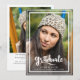 Un élégant script moderne et audacieux avec deux photos Graduation Faire-part. Doté d'une photo pleine dimension sur le devant avec une superposition de texte blanc et d'une photo sur le côté arrière avec des détails optionnels.