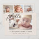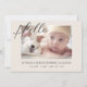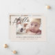 Script Baby Photo Faire-part de naissance moderne. Carte Faire-part de naissance multi-photo avec place pour une photo de bébé caractéristique sur l'avant et trois photos plus petites sur l'arrière. Design moderne minimal avec script Bonjour à l'avant de la faire-part de naissance.